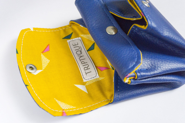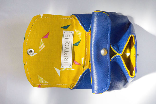 Porte-monnaie mignon en simili cuir bleu foncé et doublé en coton.