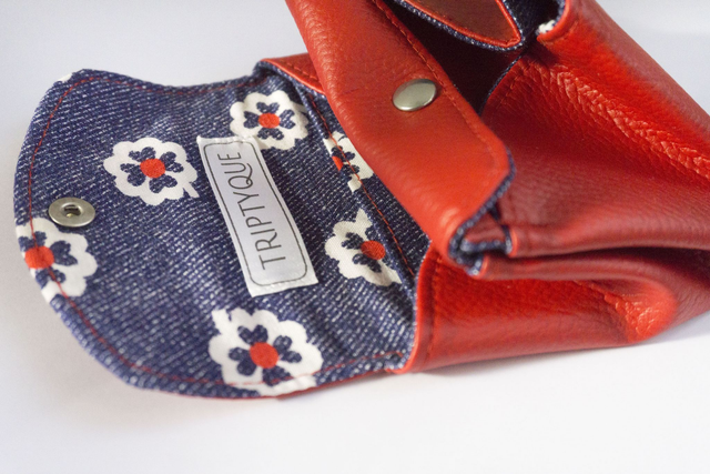 Porte-monnaie mignon en simili cuir rouge et doublé en coton.
