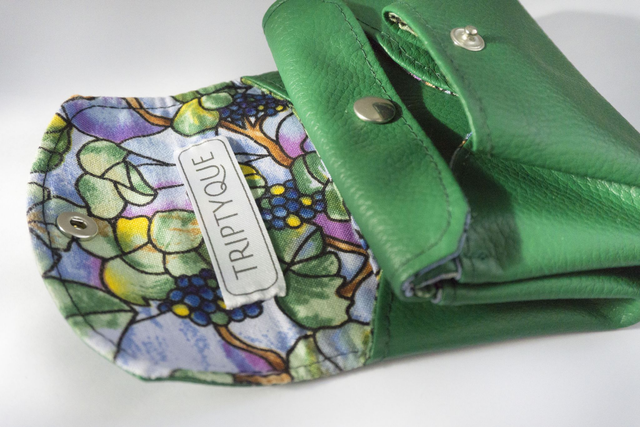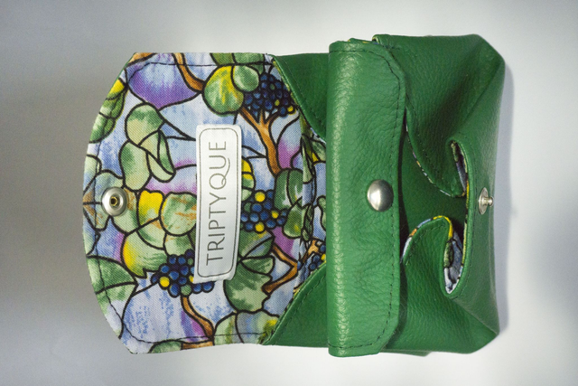Porte-monnaie mignon en simili cuir vert et doublé en coton.
